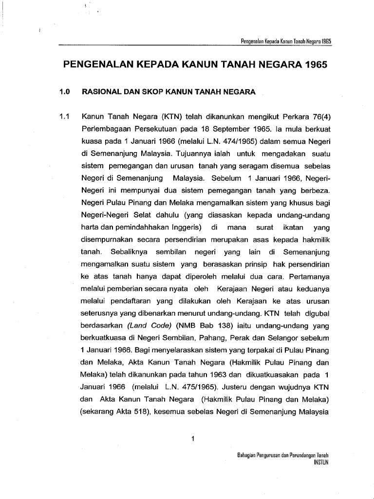 Mempunyai sistem pemegangan dan urusan tanah yang tunggal bermula 1 januari 1966. Kanun tanah negara (akta 56/): Pelupusan tanah di bawah kanun tanah negara 1965 (akta 56/1965) pendahuluan 1. Kanun tanah negara, (akta 56/). Ia tidak terpakai di negeri sabah dan sarawak.
