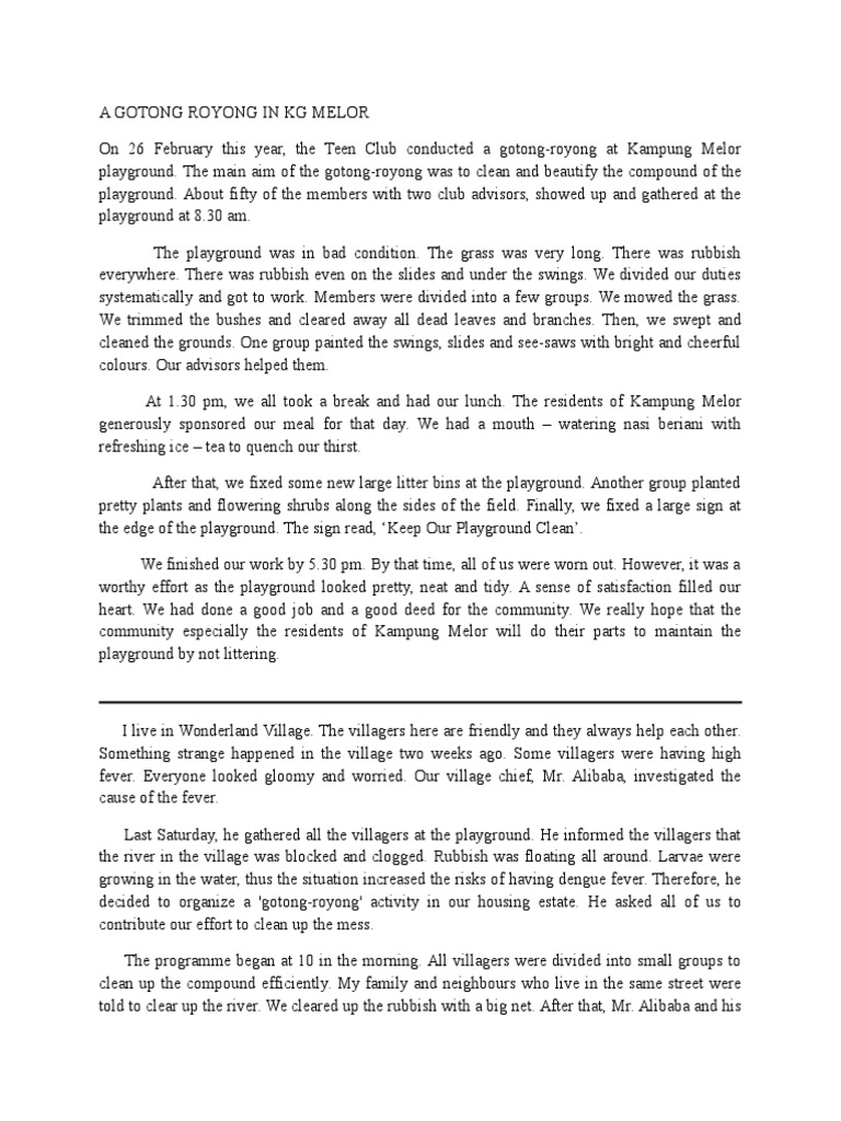 Essay Of Gotong Royong from kasuari18-tniad.mil.id 0 ratings0% found this document useful (0 votes). Literature in english is the writing written in english, but english in literature is the overall english literature that there is in the general category of literature. Ia juga merupakan sebahagian daripada cara hidup atau adat resam dalam masyarakat khususnya apabila adanya kenduri perkahwinan, perayaan, mahupun sesuatu majlis. Rakyat malaysia bergotong royong menyumbang untuk bayar utang negara. Afrikaans albanian arabic bengali chinese croatian czech danish dutch english finnish french german greek hindi hungarian icelandic indonesian italian japanese korean latin malay malayalam marathi nepali. Gotong royong dan solidaritas merupakan dua hal yang saling berkaitan satu sama lain. Here are 3 possible meanings. Cerakinkan ayat majmuk kepada ayat tunggal cerpen kanak kanak change in quantity demanded cerita pendek buku cerita bahasa melayu tahun 1 cerpen pendek kanak kanak cerita baru di pawagam 2018 cefr malaysia lesson plan cerita buah buahan untuk kanak kanak.