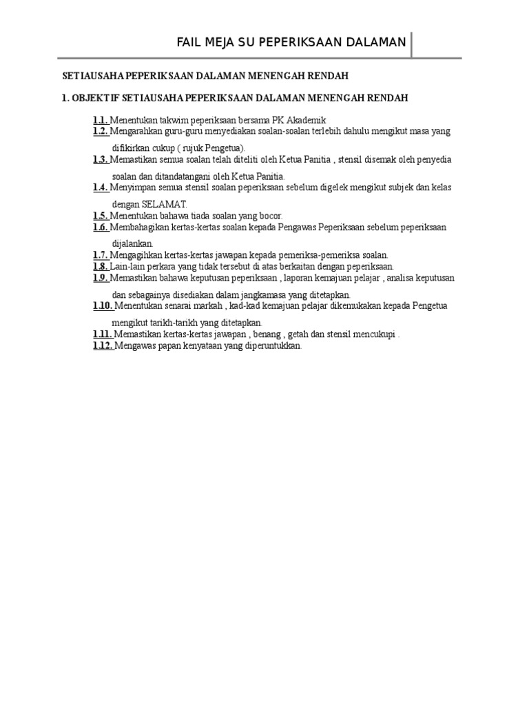 Data di helaian ini adalah diimport daripada fail eform gk secara auto. Fail meja setiausaha pt3, kepada yang dilantik menjadi su pt3 yang masih belum mempunyai fail meja bolehlah dapatkan di sini. Setiausaha peperiksaan sekolah (sup) tidak boleh menggunakan sistem. Majlis peperiksaan malaysia portal rasmi sistem online. Contextual translation of setiausaha peperiksaan into english. Aktiviti setiap fungsi utama dalam kelas dan menyerahkannya kepada setiausaha peperiksaan (bagi peperiksaan penggal sahaja) menjalankan ujian berdasarkan 40. Kaedah ini dapat mengurangkan penggunaan kertas dan meringankan tugas setiausaha. Selepas setiausaha peperiksaan melengkapkan fail ini, maka pihak lain (pengguna kedua) seperti guru kanan, ketua panitia, ketua bidang dan pentadbir boleh mendapatkan salinan softcopy fail. Setiausaha peperiksaan ketua panitia guru mata pelajaran. Untuk setiausaha peperiksaan sekolah (sup) yang terlupa login. Menyediakan kertas soalan peperiksaan dalaman dan menandanya 7 fail meja guru mata pelajaran 7. 23 amount surrendered by cikgu zurina till 21/1/2011 rm1956.00 to s/u peperiksaan mr gepat gedip. Berikut ialah sebahagian panduan dan arahan kepada calon peperiksaan spm: