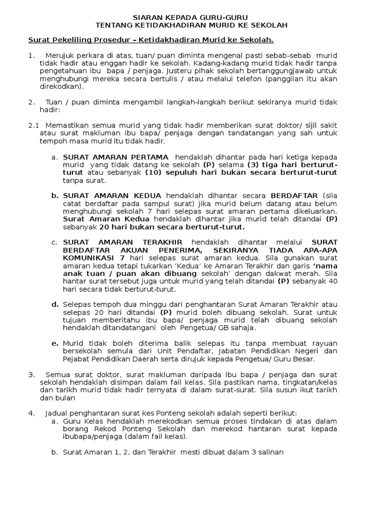 Pekeliling Kehadiran Guru Ke Sekolah / Aksi yang divideokan tersebut menuai kecaman dari masyarakat.. Surat pekeliling ikhtisas kementerian pendidikan malaysia bilangan 1 tahun 2019 panduan pengurusan rekod sistem kehadiran murid di sekolah kementerian pendidikan malaysia. Pelantikan guru data di sekolah kerajaan dan bantuan kerajaan kementerian pendidikan malaysia. Surat pekeliling ikhtisas (spi) 5. Jadi kepala sekolah menugaskan salah seorang guru untuk mengisi aplikasi absensi dengan meminta user dan passwordnya ke operator. Tidak kira anda pengetua, guru besar.
