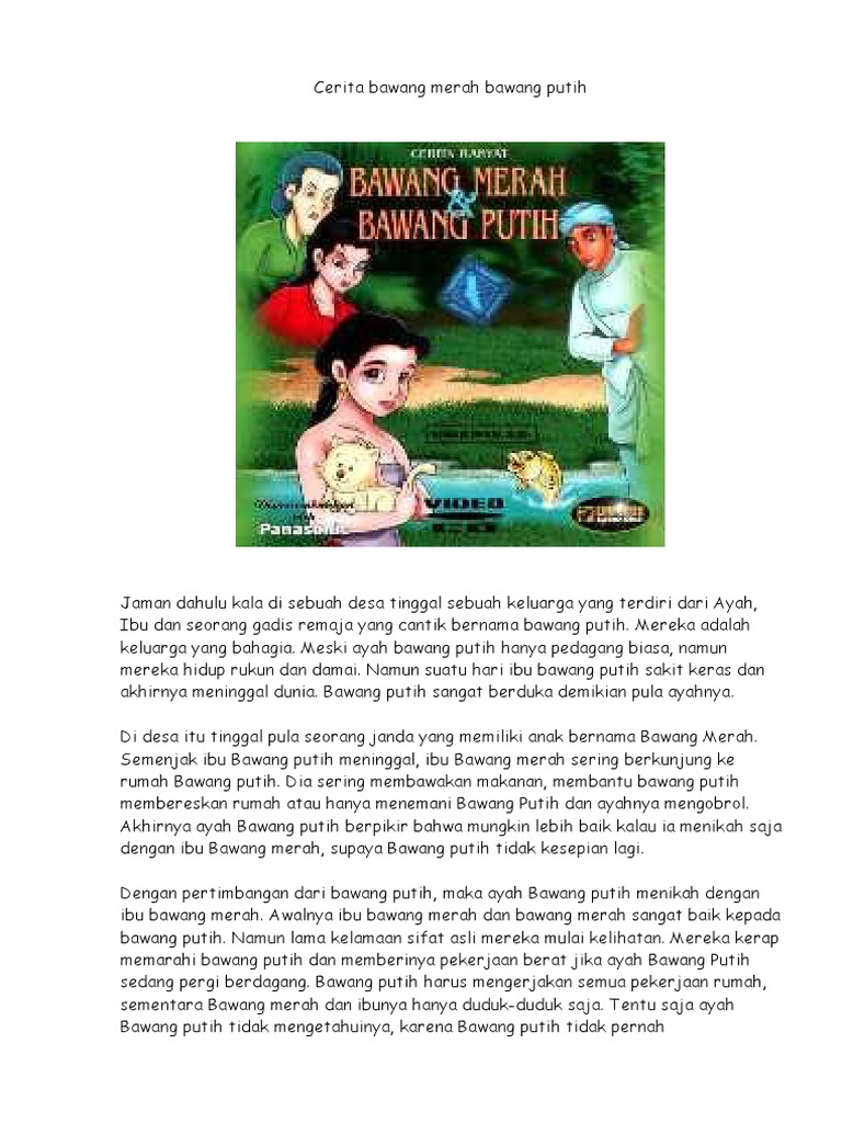 Cerita Bawang Merah Dan Bawang Putih 6nge6g7q5klv from idoc.pub Pada jaman dahulu kala, tersebutlah seorang gadis cantik dan baik budi yang bernama bawang putih. Untuk di sinetron bawang putih berkulit merah dia jadi sosok gadis judes, ambisius, terobsesi ingin jadi artis dan orang kaya. Selain, cerita rakyat timun mas, bawang merah dan bawang putih adalah salah satu kisah populer yang berasal dari jawa tengah. Jejel nek wong tuwaku tesih ana, uripku mesti ora sak nelangsa kiye (selendange kendang). Ketika ibu kandungnya meninggal dunia, tak lama sang ayah menikah dengan janda dengan anak satu, anaknya itu bernama bawang merah. Bawang merah dan bawang putih memiliki karakter dan kepribadian yang berbeda. Dan bawang merah serta bawang putih memiliki sifat dan juga perangai yang sangat bertolak belakang. Bawang merah juga merupakan salah satu tanaman yang paling penting dan dapat digunakan sebagai bumbu masakan di setiap bagian dunia.