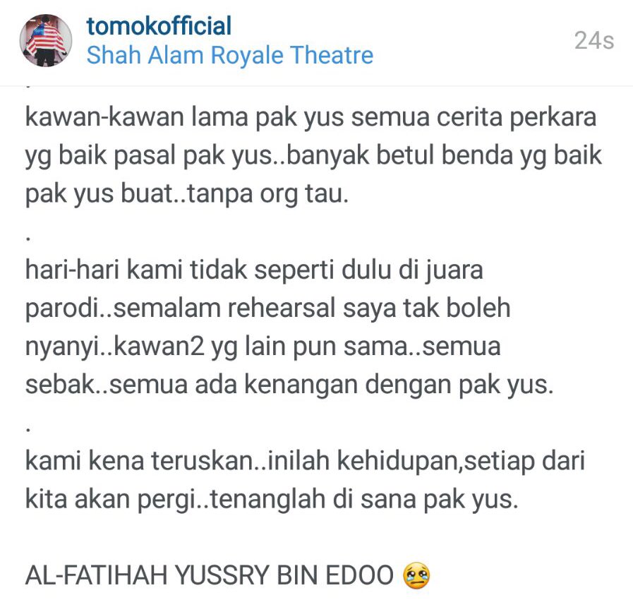 Bukan sahaja para artis dan penonton di studio malah penonton dirumah mengalirkan air mata mengenang pemergian beliau. Dato ac sebak bila kongsi kisah allahyarham pak yus… dato hattan & ajak buat kami turut menangis… rahim cipta puisi khas untuk pak yus. Juara parodi semalam diadakan bersempena tribute kepada pemergian allahyarham yus jambu. Pak yus jambu dalam kenangan. Juara parodi semalam diadakan bersempena tribute kepada pemergian allahyarham yus jambu. 10 permergian pelawak lagenda yang sangat dirasai. Pak yus jambu dalam kenangan.perjalanan hidup pakyus dan.pelawak yus jambu atau nama sebenar yussry edoo, 39 Arwah pak yus biaya sekolah tahfiz kami arwah abam bocey belanja orang susah makan dr mia. Pak yus jambu dalam kenangan. Juara parodi ditayangkan setiap hari jumaat pada jam 10 malam di mana para peserta akan menyanyi lagu popular tetapi. Saksikan juara parodi setiap hari jumaat jam 10 malam di saluran astro warna dan mustika hd. Juara parodi pakyusdalamkenangan tomok salam akhir. Tonton online juara parodi pak yus dalam kenangan 2015.