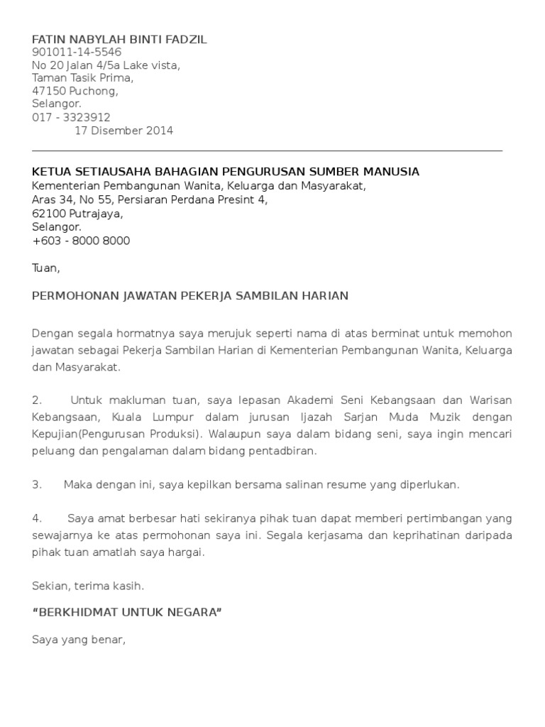 *setiap permohonan yang dihantar hendaklah ditanda pekerja sambilan harian disebelah kiri atas sampul surat. Wilayah persekutuan putrajaya), is a planned city and the federal administrative centre of the malaysian capital. Pekerja sambilan harian penempatan : Calon yang berminat dikehendaki mengemukakan dokumen seperti berikut bahagian pendidikan guru kementerian pendidikan malaysia aras 5 blok e13 kompleks e pusat pentadbir kerajaan persekutuan 62604 putrajaya. 0 ratings0% found this document useful (0 votes).